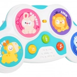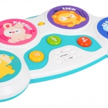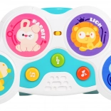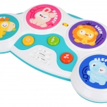 Štyri farebné plochy s motívmi králika, leva, žirafy a slona spúšťajú zvieracie zvuky, melódie a bubnové rytmy – zábava na jedno ťuknutie.