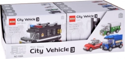 Stavebnica CITY VEHICLE predstavuje svet každodenných služieb a profesií prostredníctvom zábavných mini modelov. Deti si môžu postaviť napríklad taxík, policajné auto, smetiarske auto, vysokozdvižný vozík, nakladač/nákladné auto, plošinu, reportážne vozidlo či rodinný karavan. Každý model je zábavnou výzvou a po zostavení sa stáva skvelou hračkou na voľnú hru.