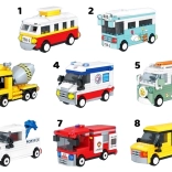 V ponuke sú obľúbené stroje miest a stavieb: električka, autobus, školský bus, sanitka, hasičské vozidlo, traktor, domiešavač betónu aj kamper/van. Každý model je samostatný set s obrázkovým návodom, takže sa hodí aj pre začínajúcich staviteľov.