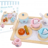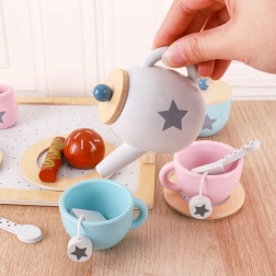 Drevený čajový a kávový servis premení každú detskú izbu na útulnú kaviareň. Vďaka pevnému spracovaniu, hladkým hranám a pastelovej farebnosti je set nielen krásny, ale aj bezpečný na každodenné hranie. Deti si vyskúšajú servírovanie čaju či kávy, zdokonalia úchop a komunikáciu s ostatnými.
