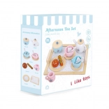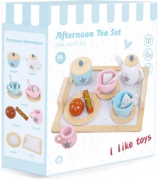 Obsahuje všetko, čo je potrebné pre štýlové pohostenie: kanvičku s viečkom, cukorničku, džbánik na mlieko, 2 šálky s podšálkami a lyžičkami, podnos aj malé „dobroty“. Hra prirodzene rozvíja jemnú motoriku, koordináciu a spoluprácu, zároveň učí deti zdieľaniu a etikete pri stole.