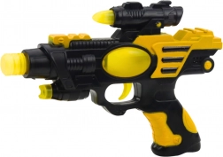 - futuristická kozmická pištoľ, čierno‑žlté prevedenie