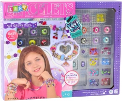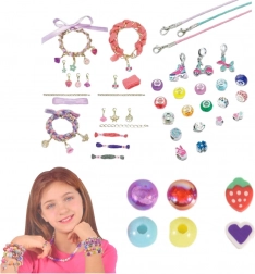 Táto univerzálna sada na DIY bižutériu umožní vytvárať jedinečné náramky podľa nálady a príležitosti. Farebné srdiečka, ovocie, kvety aj lesklé koráliky dodajú každému šperku výnimočný charakter. Vďaka elastickej šnúrke a kovovému základnému náramku zvládnu tvorbu aj začiatočníci.
