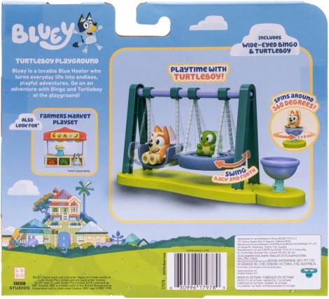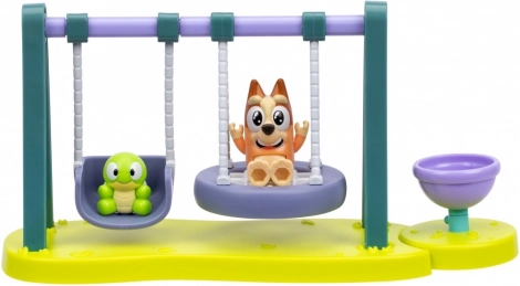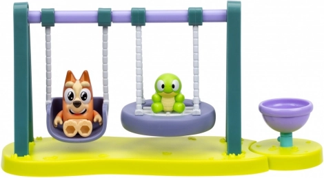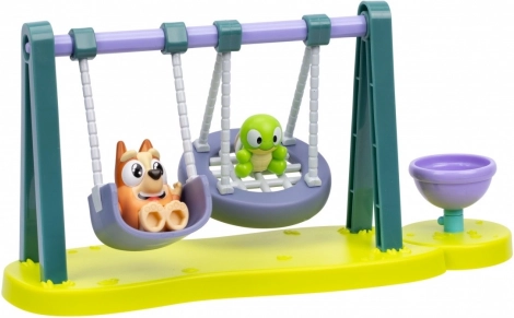 Tento farebný mini herný set s hojdačkami poteší všetkých malých fanúšikov BLUEY. Dve funkčné hojdačky a točiaca sa miska/kolotoč pozývajú k nekonečným príbehom na ihrisku. Deti môžu posadiť Bingo a korytnačku, rozhojdávať ich dopredu a dozadu a potom ich roztočiť, až sa im zatočí hlava od radosti.