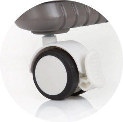Štyri kolieska pre plynulý pohyb po domácnosti a skladacia konštrukcia na úsporu miesta pri skladovaní.