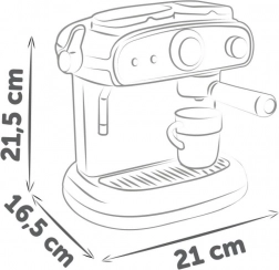 Praktická sada zahŕňa 2 hrnčeky, 2 lyžičky a 2 kapsuly na kávu, takže deti môžu obslúžiť aj kamarátov či súrodencov. Kompaktné rozmery 16,5 × 21 × 21,5 cm zaručujú, že sa kávovar zmestí na každý detský kuchynský pultík.