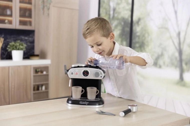 Pozvite deti do sveta voňavej kaviarne s kompaktným detským espresso kávovarom, ktorý vyzerá a správa sa ako skutočný. Realistické svetelné a zvukové efekty podporujú predstavivosť a rozvíjajú sociálne zručnosti pri hre. Kúzelné hrnčeky, ktoré menia farbu pri kontakte so studenou vodou, dodajú každému „pressu“ zábavnú šou.