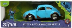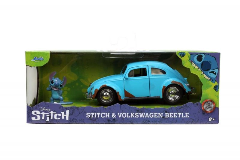 Štýlový zberateľský model 1959 VW Beetle v mierke 1:32 inšpirovaný svetom Lilo & Stitch. Kovové prevedenie s otváracími dverami, voľnobehom a figúrkou Stitch v balení. Ideálny darček pre fanúšikov aj zberateľov, dĺžka modelu 12,7 cm.