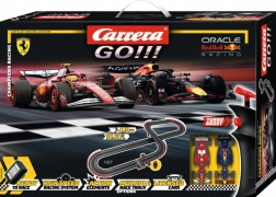 Vstúpte do sveta rýchlosti s autodráhou Carrera GO Champion’s Racing. Komplet v mierke 1:43 prináša realistické pretekárske zážitky s vozmi Oracle Red Bull Racing RB21 „M. Verstappen, No.1“ (2025) a Ferrari SF-25 „L. Hamilton, No.44“ (2025). Vďaka Turbo funkcii na ovládačoch, dvojitým kontaktným kefkám a magnetom si užijete istotu v zákrutách aj na rovinkách.