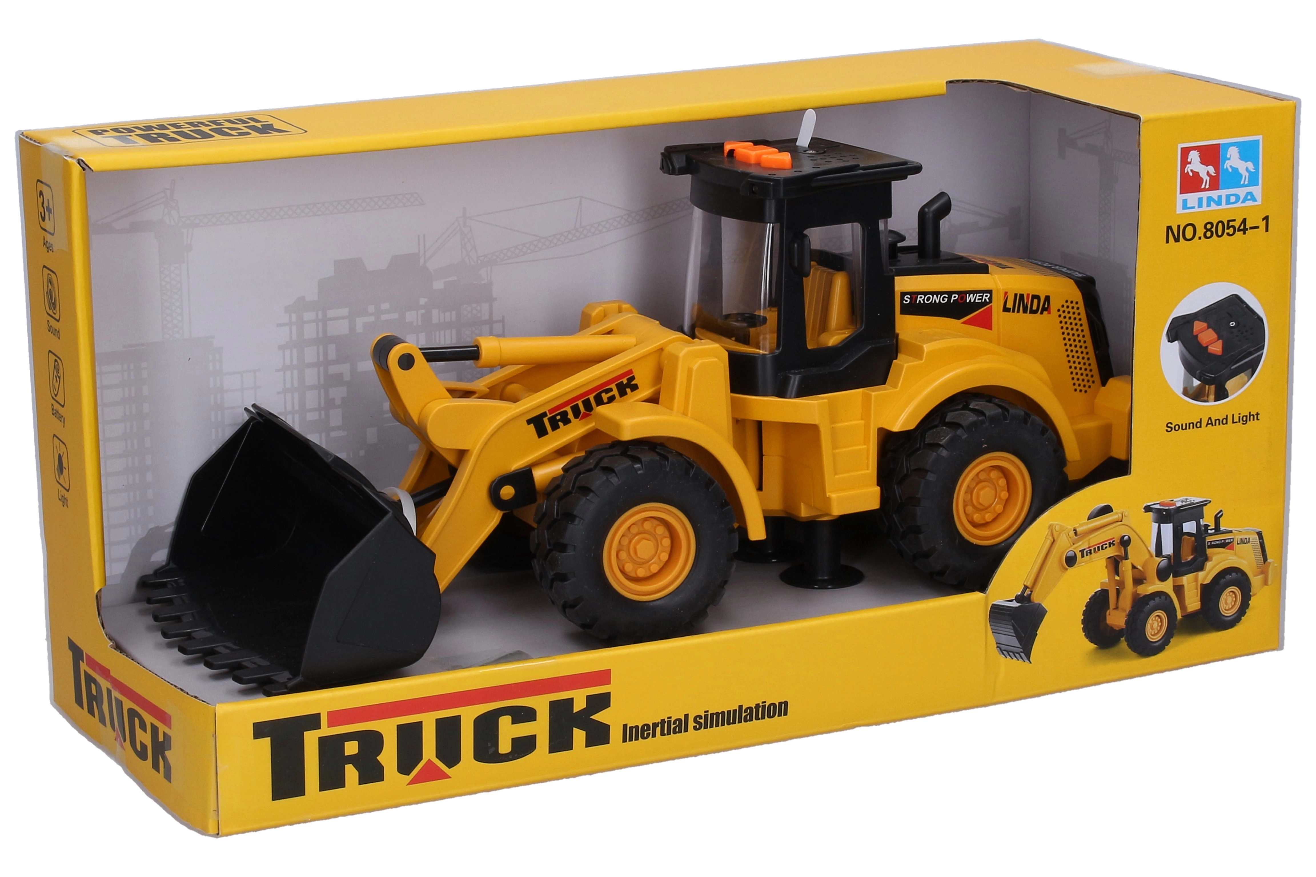 Užite si zábavu so stavebným strojom, ktorý vyzerá aj znie ako skutočný. Nakladač na zotrvačník je ideálny na hranie doma aj vonku, ponúka plynulý pohyb vpred vďaka zotrvačníkovému pohonu a ovládateľnú pohyblivú radlicu na nakladanie a vykladanie.