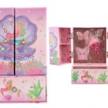 Táto pôvabná šperkovnica s motívom morskej panny je navrhnutá pre malé milovníčky rozprávok a krásnych doplnkov. Vďaka rozkladacej konštrukcii sa ľahko otvorí a prehľadne odhalí priehradky na prstienky, náramky aj ďalšie drobnosti. Spodný šuplík poskytuje ďalší priestor na cennosti a tajnosti, takže je všetko úhľadne uložené na jednom mieste.