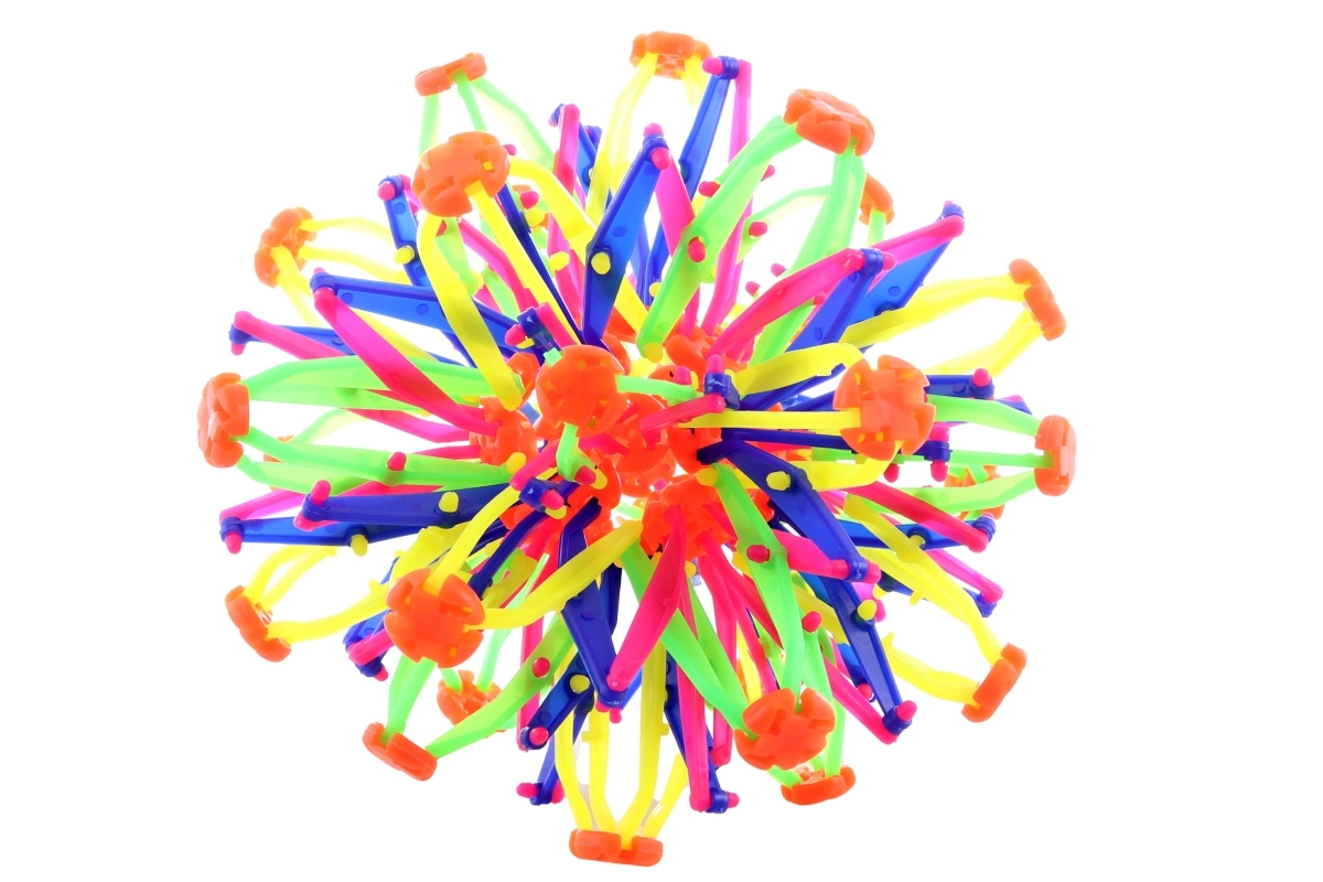Tento farebný rozkladací míček z ľahkého plastu zaujme deti aj dospelých. Vďaka premyslenej konštrukcii sa jednoducho roztahuje a zmršťuje, čo z neho robí skvelú antistresovú hračku aj pomôcku na rozvoj motoriky a priestorového vnímania. Hladké zakončenie prútov a plynulé kĺby zaisťujú bezpečnú a zábavnú manipuláciu.