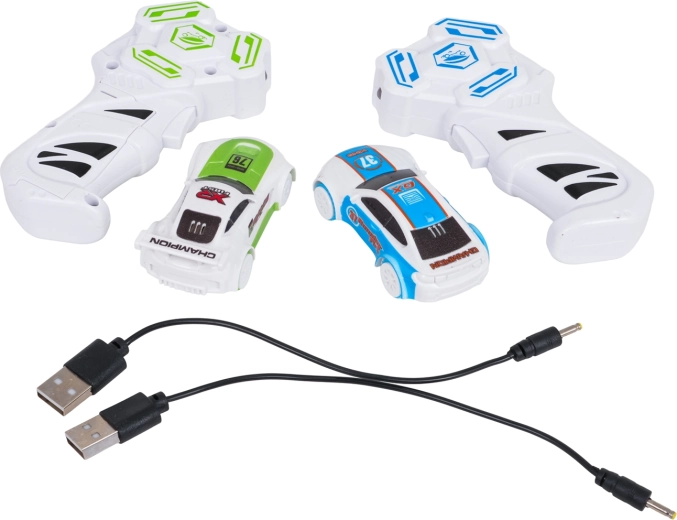 - 2 × autíčko, 2 × diaľkový ovládač, 2 × USB nabíjací kábel, stavebné diely dráhy, návod