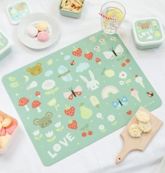 Praktické detské prestieranie v sýtej zelenej farbe s hravým motívom sa hodí na každý stôl. Vďaka odolnému vinylu sa ľahko čistí, dlhodobo vyzerá skvele a chráni povrch stola pri každodennom používaní.
