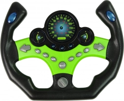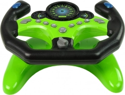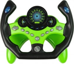 Tento zeleno‑čierny detský volant ponúka až 9 funkčných tlačidiel vrátane smeroviek, klaksónu a zvukov záchranných zložiek. Po otočení kľúčika sa rozsvietia podsvietené budíky v modrej farbe a malý vodič môže vyraziť na „cestu“. Stabilný podstavec s prísavkami udrží volant pevne na doske stola.