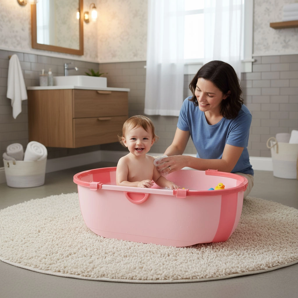 Premyslené detaily, ako sú bezpečnostné zámky proti nechcenému zloženiu, široká stabilná základňa a integrované madlá, uľahčujú manipuláciu aj prenášanie. Hladký povrch sa ľahko čistí a odtok vody je vďaka štopľu rýchly a pohodlný – bez nakláňania celej vaničky.