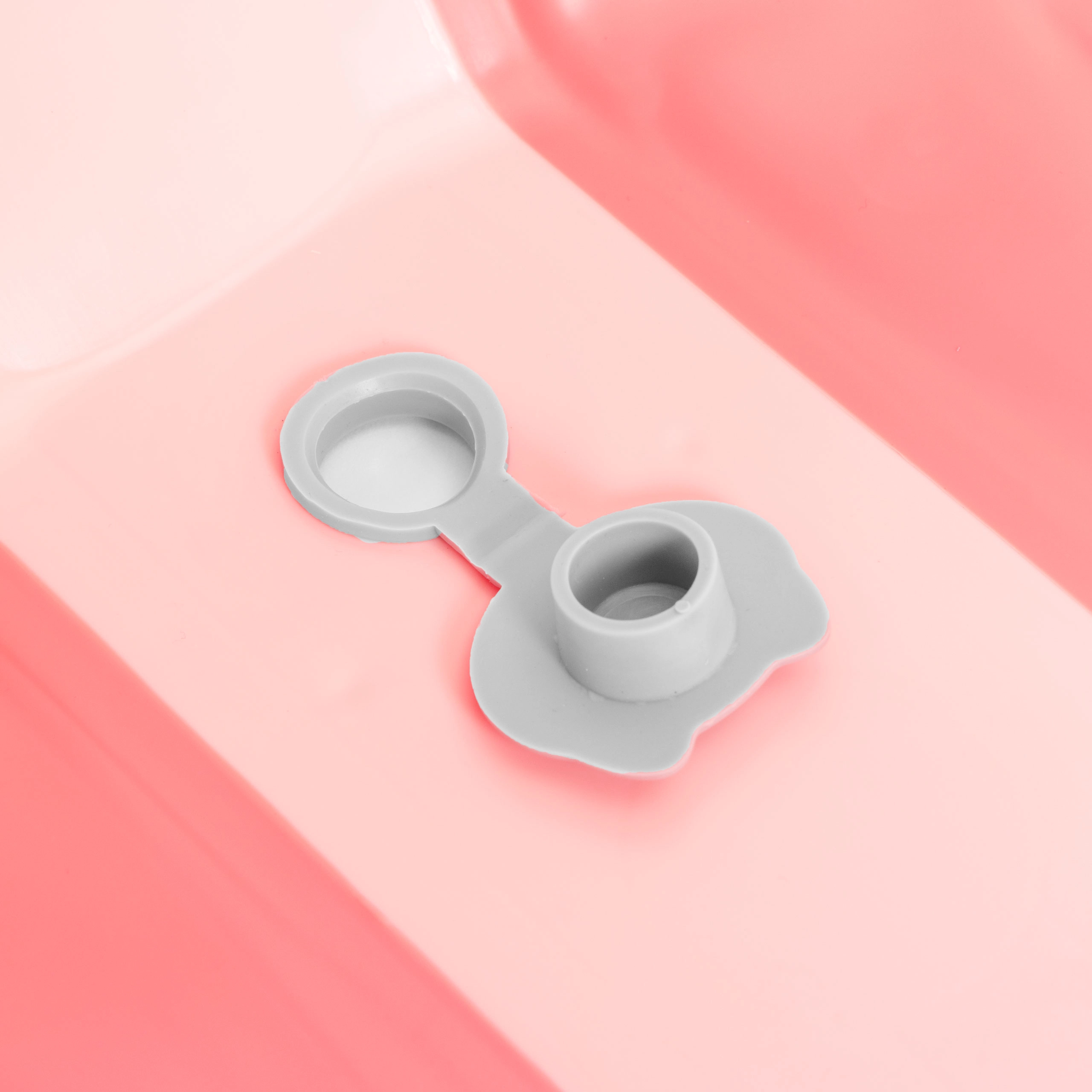 Štopľ z mäkkej gumy umožňuje pohodlné vypustenie vody bez zdvíhania vaničky a pri príliš horúcej vode zmení farbu na bielu – pre bezpečnú teplotu kúpeľa.