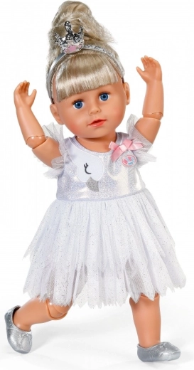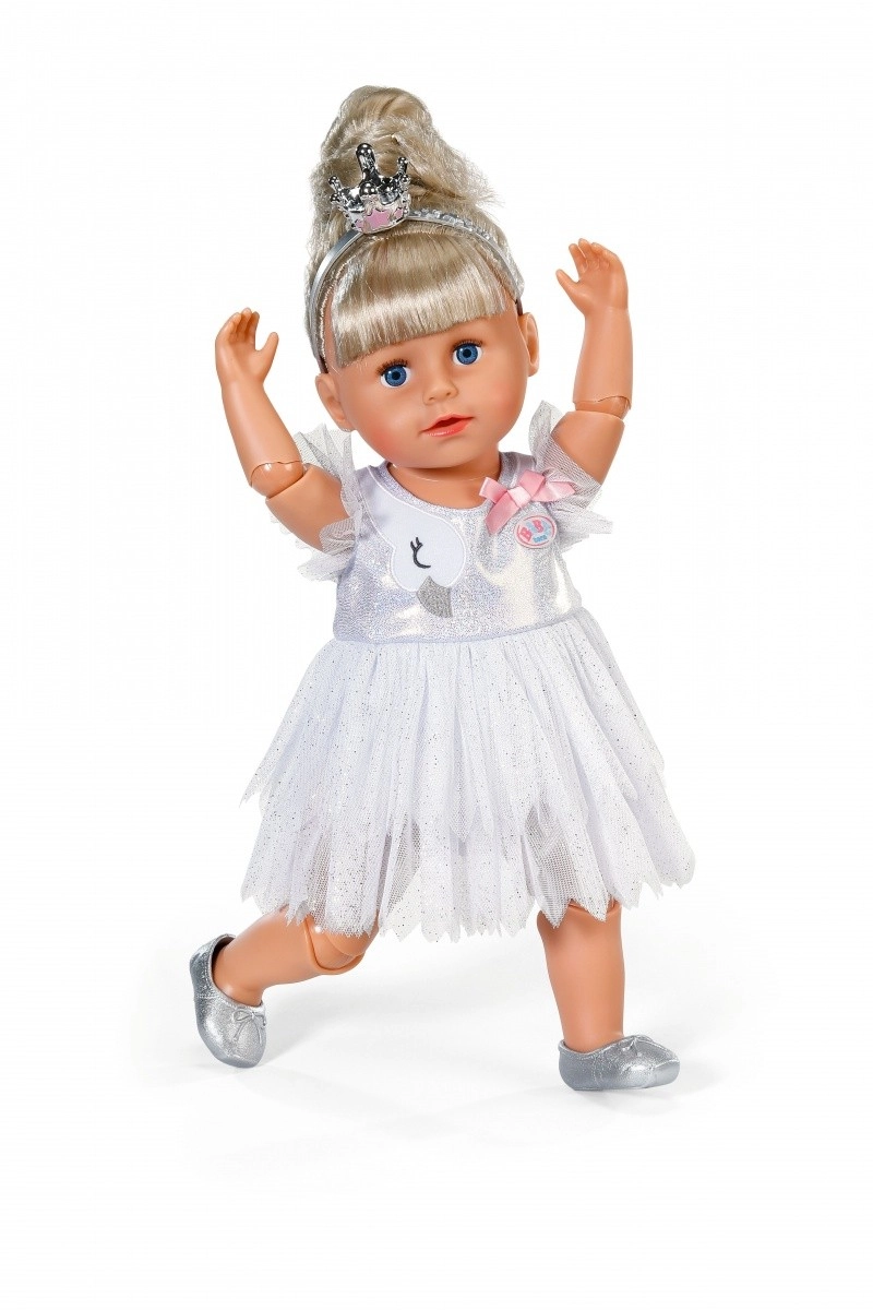 Rozžiarte každé tanečné vystúpenie s baletným setom BABY born pre bábiky 43 cm. Obsahuje trblietavé biele tutu šaty s motívom labute a mašličkou, strieborné baletné topánočky a korunku pre dokonale čarovný vzhľad. Skvelý doplnok pre kreatívnu a dlhotrvajúcu hru, kompatibilný aj s BABY born Teddy.
