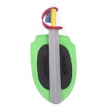 Zábavná sada pre malých rytierov: penový meč a štít v zelenej farbe na bezpečné súboje a kostýmové hry. Ľahký materiál, bezpečné hranie a ideálna veľkosť pre deti zaručujú veľa akcie doma aj vonku.