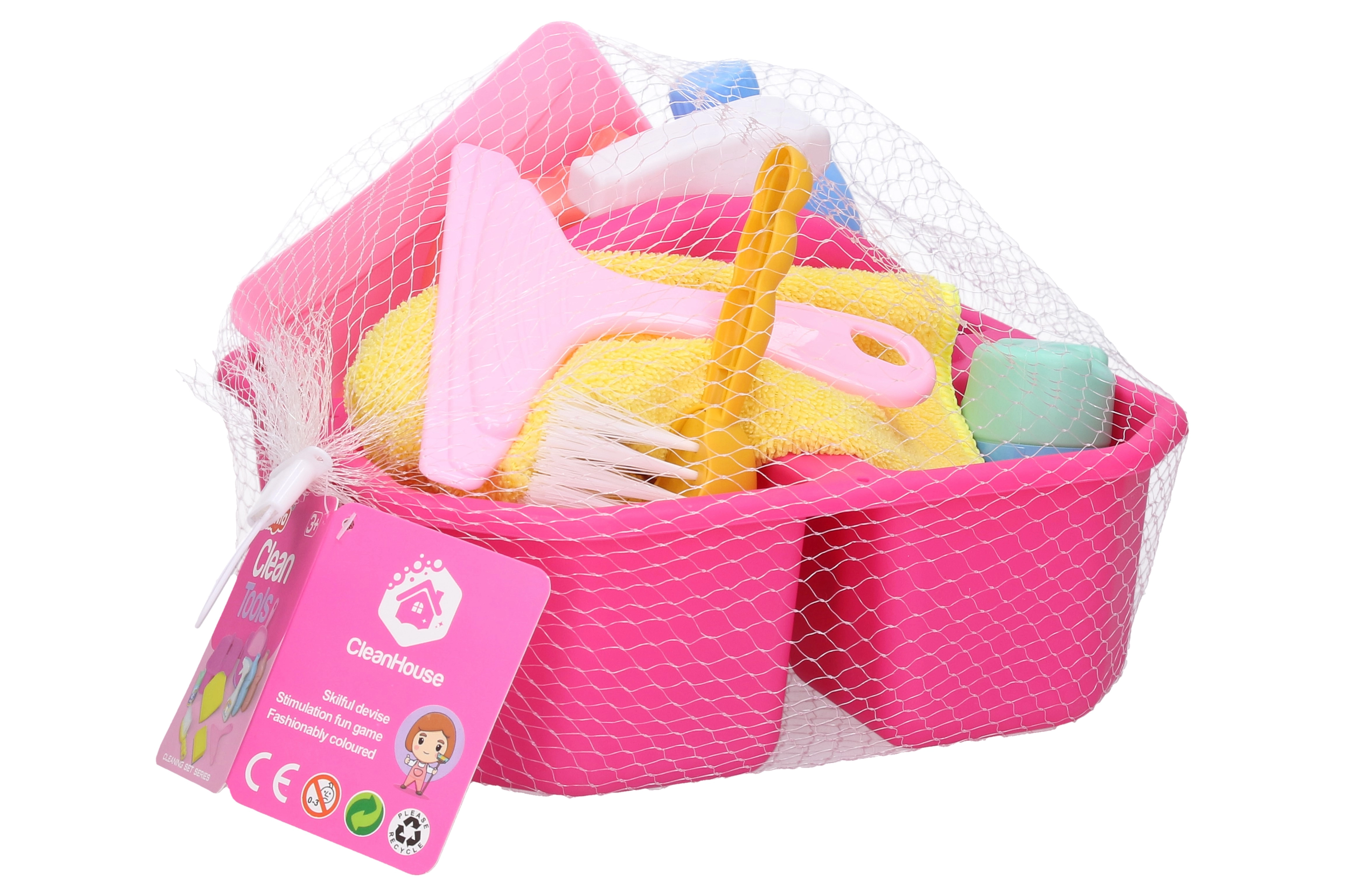 Zábavný detský upratovací set 9 ks podporí fantáziu aj samostatnosť pri hre na domácnosť. Súprava obsahuje praktické vedierko/nosič na prenášanie a bohaté príslušenstvo pre malých pomocníkov – lopatku a metličku, stierku, handričku, hubku a „čistiace prostriedky“ pre vierohodné hranie. Ľahký a bezpečný plast, jednoduché ukladanie do caddy a všetko vždy po ruke.