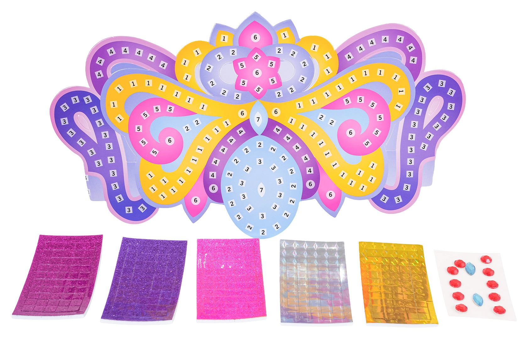 Premeňte každé hranie na kráľovskú slávnosť. S touto sadou si deti vyrobia jedinečnú tiaru podľa vlastného vkusu – stačí lepiť samolepky podľa čísel a dozdobiť ju kamienkami. Ideálne ako darček pre malú princeznú alebo na kreatívne popoludnie.