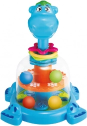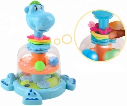Tento rozkošný modrý hrošík prináša deťom hodiny radostnej zábavy a zároveň rozvoj dôležitých zručností. Stlač hlavičku a sleduj, ako sa vo vnútri roztočí koleso a farebné guľôčky začnú veselo poskakovať. Veľké časti sú navrhnuté pre malé rúčky – ľahko sa držia a sú príjemné na dotyk.