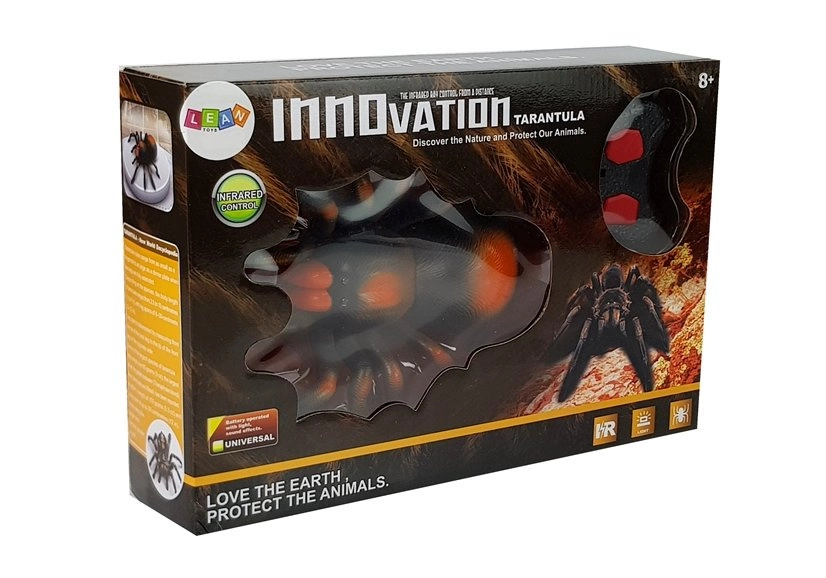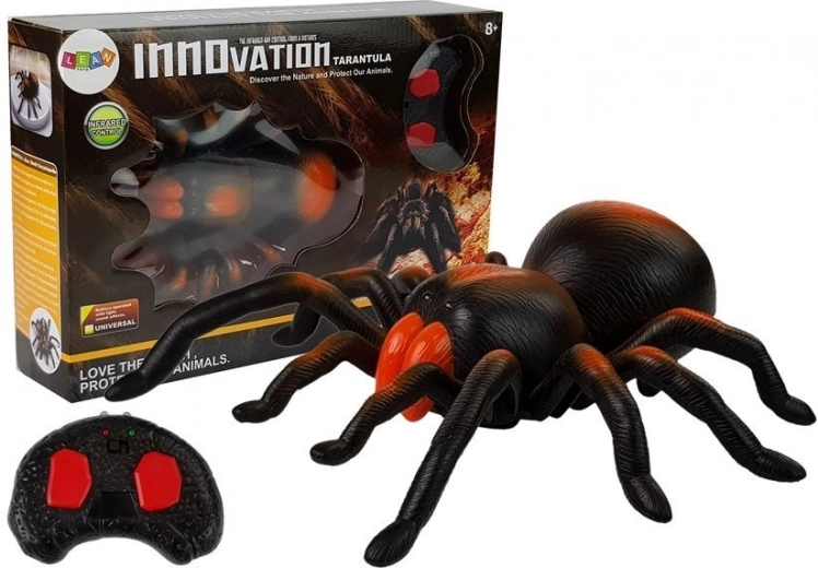 Obria čierno‑oranžová tarantula vyzerá na prvý pohľad ako živá. Je vyrobená z kvalitného plastu, má detailné textúry, svietiace oči a plynulý pohyb nôh. Na infra ovládači nájdete dve veľké tlačidlá: jedno na plynulý pohyb vpred a druhé na rýchle otočenie doprava. Perfektná na hranie doma, na oslavách aj ako strašidelná dekorácia.