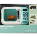 Mikrovlnná rúra simuluje skutočné funkcie s realistickými zvukovými a svetelnými efektmi a rotujúcim kuracím mäsom.
