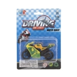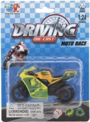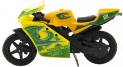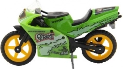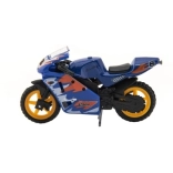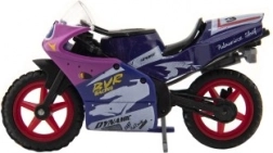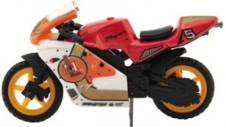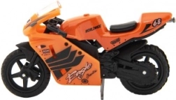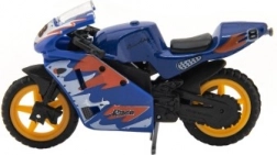 Modelová pretekárska motorka meria 8 cm a je vyrobená z kombinácie kovu a plastu. Skvelá pre deti od 3 rokov, podporuje kreatívnu a imaginatívnu hru. Motorka je balená na karte a je k dispozícii v niekoľkých rôznych farebných prevedeniach.