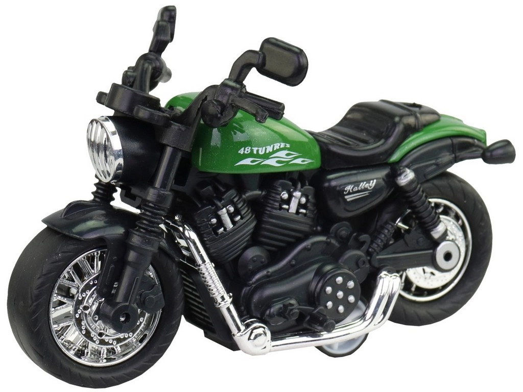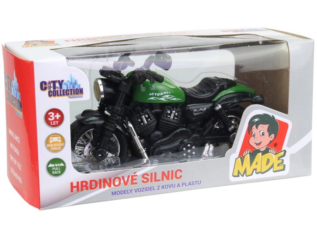 Štýlová kovová motorka so spätným chodom poteší každého malého fanúšika motošportov. Vďaka kovovému materiálu je odolná a pripravená na každodenné preteky. Ponúka štyri atraktívne farby, kompaktný rozmer 10,5 cm a je vhodná pre deti od 3 rokov.