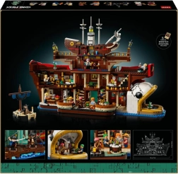 Súčasťou je 10 anime minifigúrok – Luffy, Zoro, Nami, Usopp, Sanji, Zeff, Garp, Helmeppo, Koby a Mihawk – a taktiež množstvo doplnkov, ako jedlo a nápoje, transpondér (slimačí telefón) a Mihawkova loď. S 3402 dielikmi a rozmermi cca 35 × 54 × 27 cm ide o výnimočný kúsok pre fanúšikov pirátov, milovníkov mangy aj dospelých modelárov.