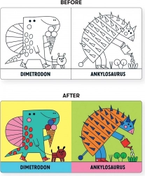 - 6 strán s obrázkami – roztomilé dinosaury na každodennú zábavu vo vani