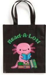 Štýlová a praktická nákupná taška s motívom axolotla, ktorý si číta na kôpke kníh. Táto taška je ľahko umývateľná, vyrobená z recyklovaného plastu a predstavuje skvelú alternatívu jednorazových plastových tašiek za dostupnú cenu.