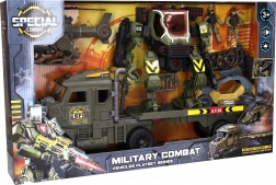 Súčasťou je robustný vojenský tahač (60 cm) s voľne bežiacimi kolesami, detailná helikoptéra na rýchle presuny, bugina s guľometom na ofenzívne akcie a dve figúrky pilotov. Nechýba opevnenie a vybavenie pre vojakov, ktoré doplní každú misiu. Robot je pripravený do akcie hneď po vybalení – batérie sú súčasťou.