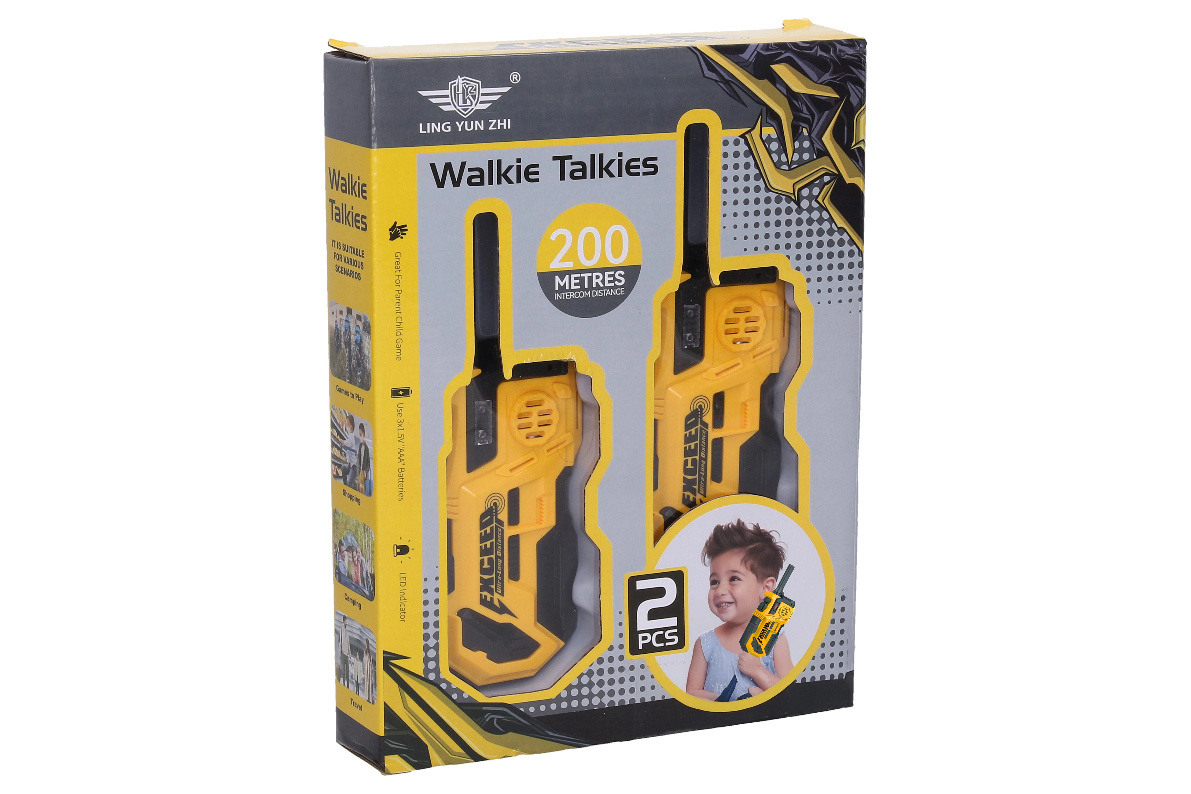 Zábavný set dvoch vysielačiek pre deti ponúka jednoduchú komunikáciu na vzdialenosť až 200 m. Jednoduché ovládanie s prepínačom ON/OFF a prevádzka na bežné batérie AAA 1,5 V z nich robia ideálnu voľbu na hry doma aj vonku.