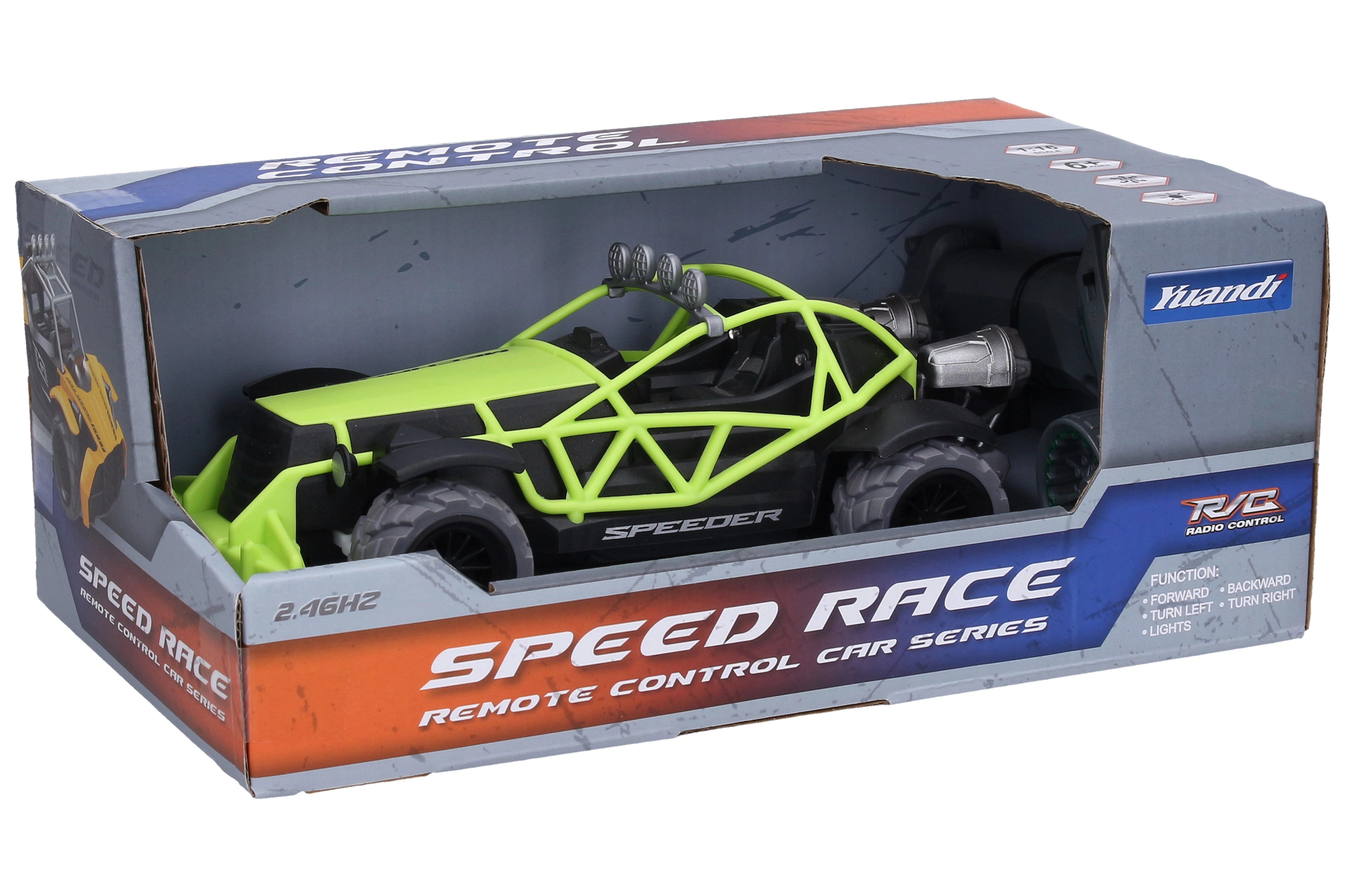 Zábavná a rýchla bugina na diaľkové ovládanie pre malých aj veľkých nadšencov. Model s dĺžkou 22 cm ponúka stabilné riadenie s frekvenciou 2,4 GHz, pohodlný pištoľový ovládač a atraktívne svetelné efekty. Jednoduché zapnutie vďaka prepínaču ON/OFF na vozidle aj ovládači.