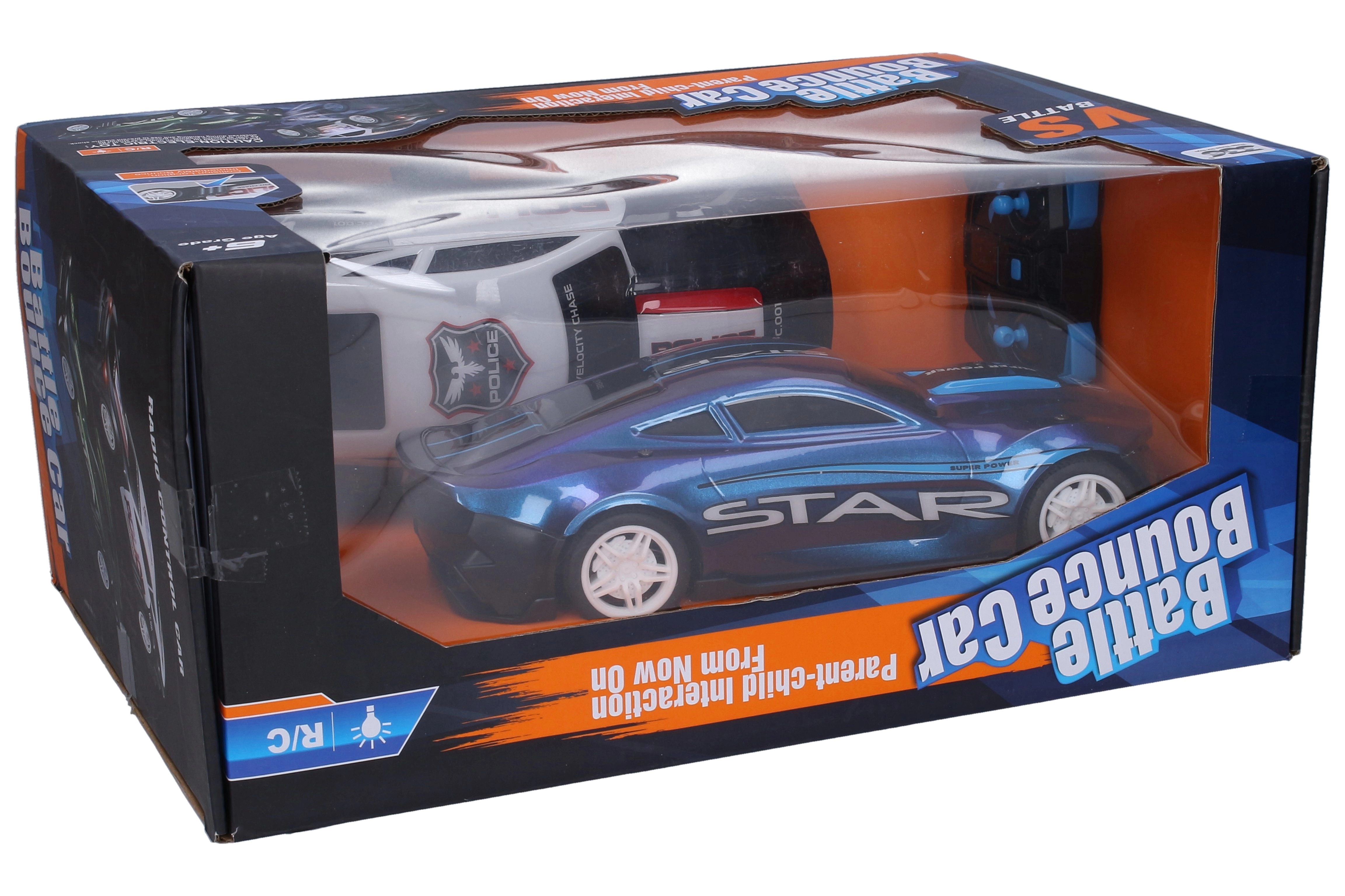 Užite si adrenalínovú zábavu s dvojicou pretekárskych áut na diaľkové ovládanie s dĺžkou 25 cm. Systém na frekvencii 2.4 GHz umožňuje plynulé riadenie bez rušenia, autá majú svetelné efekty a špeciálny mechanizmus pre akčné súboje – náraz do výfuku na ľavej strane súperovho auta spôsobí jeho vykolejenie.