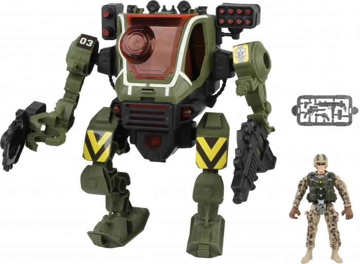 Súčasťou balenia je detailne spracovaná figúrka pilota (11 cm), ktorú možno umiestniť k robotovi pre ešte autentickejšie herné scenáre. Robot má rozmery 25 × 11 × 26 cm a je pripravený na okamžité použitie – 2× AG13 batérie sú súčasťou balenia.