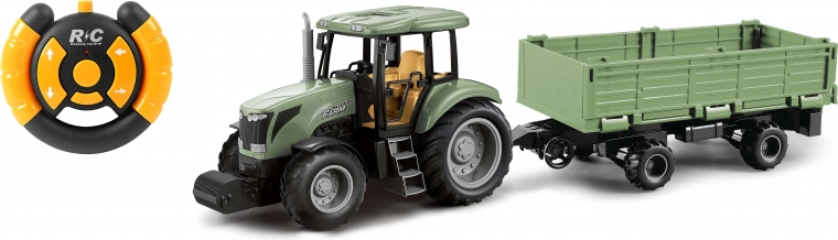 Užite si realistickú farmársku zábavu s RC traktorom s vlečkou s dĺžkou 40 cm. Model na frekvencii 2,4 GHz ponúka stabilné ovládanie bez rušenia, má nabíjateľný batériový pack 3,7 V v traktore a praktický USB kábel v balení. Ovládač vyžaduje 2× AA batérie (nie sú súčasťou).