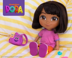 Vstúpte do sveta dobrodružstiev s bábikou DORA, ktorá spieva, hovorí po anglicky a vydáva veselé zvuky po stlačení bruška. Vďaka realistickým, jemným vlasom je ideálna na česanie a styling, zatiaľ čo odnímateľné topánky a doplnky podporujú kreatívne prezliekanie a rozprávanie vlastných príbehov.