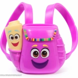 Fialový batôžtek s úsmevom sa po stlačení otvorí – ideálny na drobné doplnky a mapu. Skvelé pre rolu prieskumníčky.
