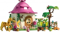 Vstúpte do fantazijného lesa, kde víly opatrujú svojho lesklého zlatého jednorožca a prežívajú čarovné dobrodružstvá. Domček v tvare huby s ružovou strechou, otváracími dvierkami a okienkami ponúka útulné zázemie na hranie – od postele v tvare listu až po malú lesnú kuchynku.