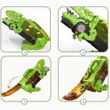 Otváracia tlama, výklopné časti a robustné kolesá zabezpečujú interaktívnu hru aj jednoduchý presun po podlahe.