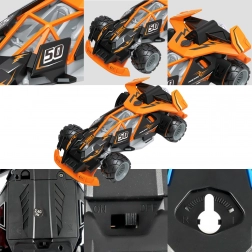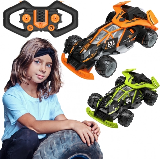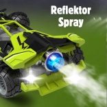 Veľké terénne kolesá zabezpečujú dobrú priľnavosť na kobercoch, parketách aj na chodníku. Auto je vybavené prepínačom ON/OFF a posúvačom kalibrácie riadenia na podvozku pre presné nastavenie. Zadný „reaktívny“ efekt s parou pridáva zábavný vizuálny prvok.