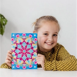 Premeňte svoj denník na jedinečný šperk. Tento linajkovaný blok A5 s motívom lotosovej mandaly si dotvoríte technikou diamantového maľovania. Lepivé body na obálke ľahko vyplníte kamienkami a vytvoríte žiarivý, odolný a elegantný dizajn, ktorý poteší pri každom otvorení.