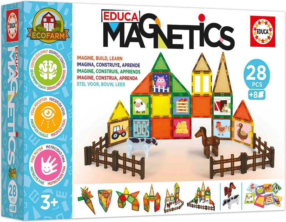Objavte zábavnú a vzdelávaciu hru s magnetickou stavebnicou EDUCA Magnetics EKO Farma. Vďaka pevným magnetickým dielom s bezpečne zaoblenými hranami deti ľahko vytvárajú 3D objekty z 2D mnohouholníkov. Stavebnica podporuje vizuálne vnímanie, rozvíja jemnú motoriku a koordináciu oko–ruka. V balení je 28 dielov, ktoré ponúkajú dostatok možností na kreatívne stavanie.