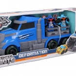 Zábavná sada pre malých fanúšikov robotov a áut prináša základňu s rampou a dvoma transformujúcimi sa robotmi. Súčasťou je aj kamión – mobilná základňa – a dopravné značky pre realistickú hru. Deti si užijú hodiny tvorivej zábavy a rozvíjania fantázie vďaka jednoduchej transformácii a prenosnej základni. Transformácia robota na nákladné auto, mobilný kamión–základňa 38 cm, rampa pre akčné jazdy a dopravné značenie robia z tohto setu skvelý darček.