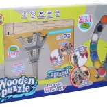 - 3D drevené puzzle, sada farieb, štetec, obrázkový návod
