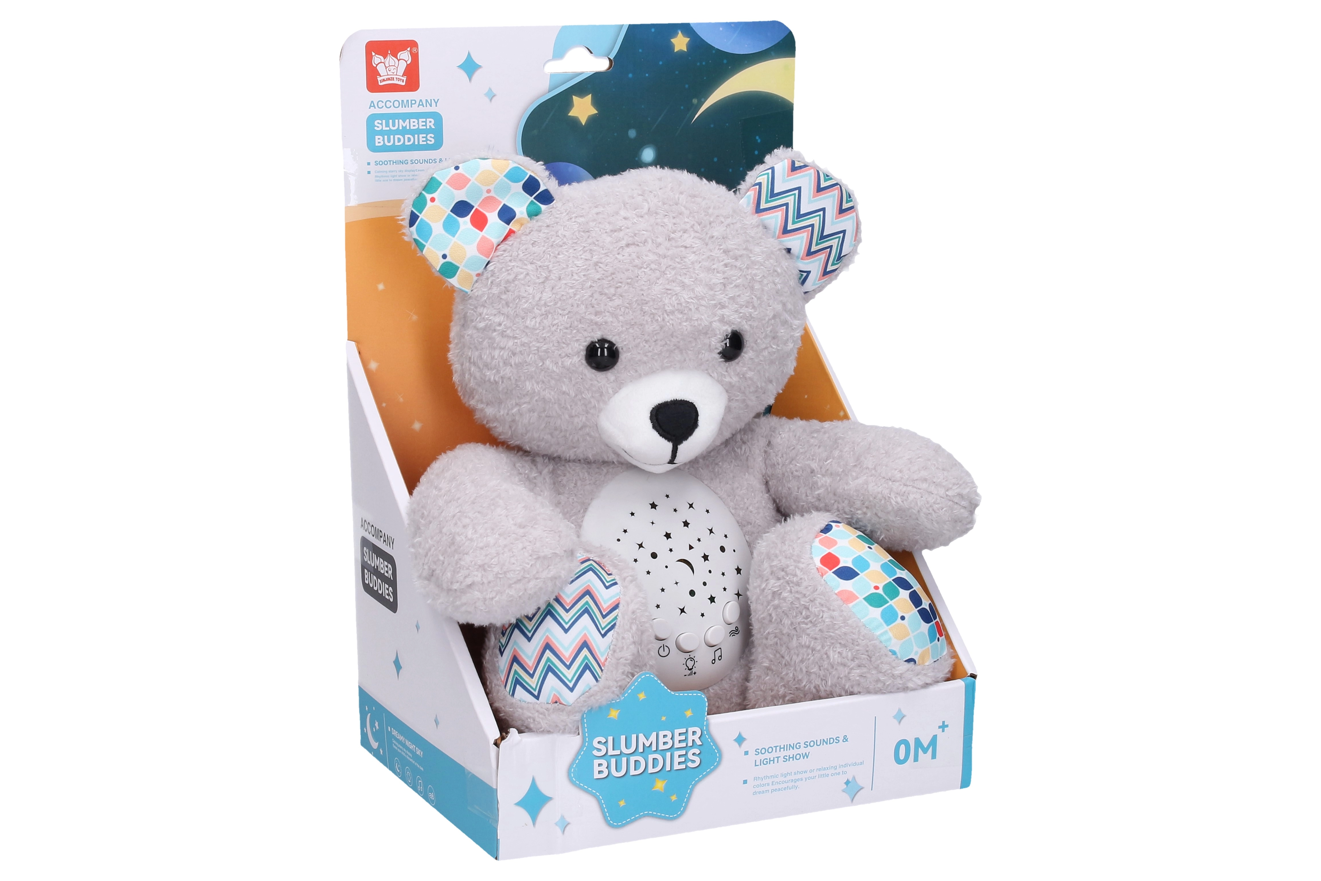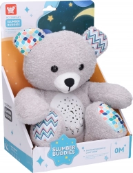 Roztomilý uspávačik v tvare medvedíka s vyberateľným projektorom pomáha deťom pokojne zaspávať. Ponúka projekciu s odstupňovanou intenzitou, 7 uspávaniek a 3 typy bieleho šumu s automatickým vypnutím po 30 minútach. Ovládanie je jednoduché pomocou tlačidiel ON/OFF, svetla, noty a vlny.