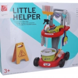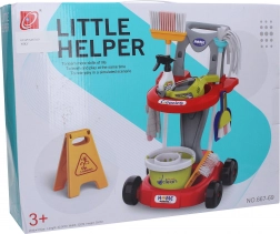 - Kompletná výbava na hranie sa na upratovanie: mop, metla, metlička s lopatkou, vedro, rozprašovač, ručný vysávač a výstražná tabuľa.